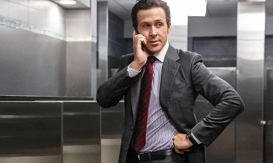 瑞恩·高斯林在《大空头》里饰演的贾里德·韦内特展现了一种“锋利且狂妄”的“智感”。他穿着剪裁极其精密的华尔街西装,梳着一丝不苟的发型,在众人皆醉时清醒地盯着崩盘的数字。这种气场是带有攻击性的,是电影中“脑力即财力”的完美代言。